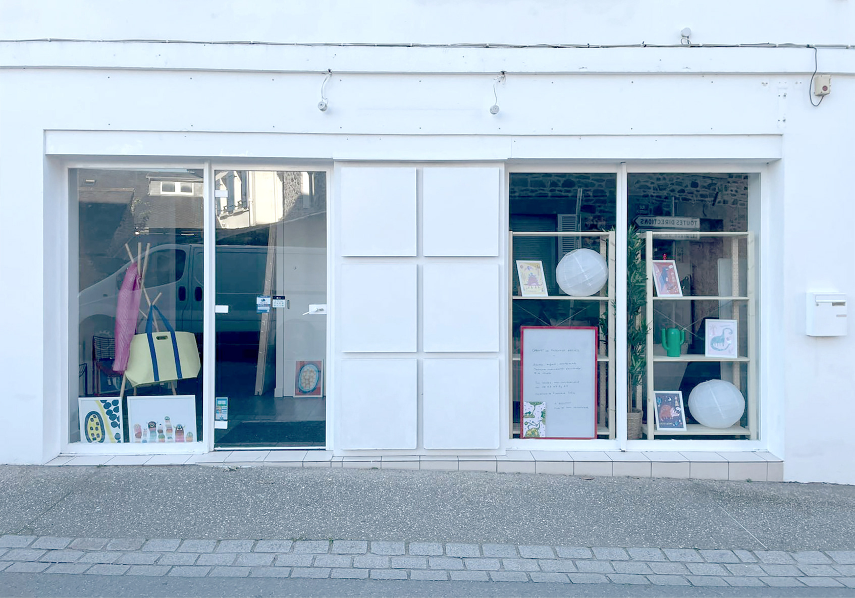 Après avoir conçu son logo, j'ai décliné son univers sur la vitrine du local afin d’offrir une présence visible mais apaisante, à l'image de sa pratique.