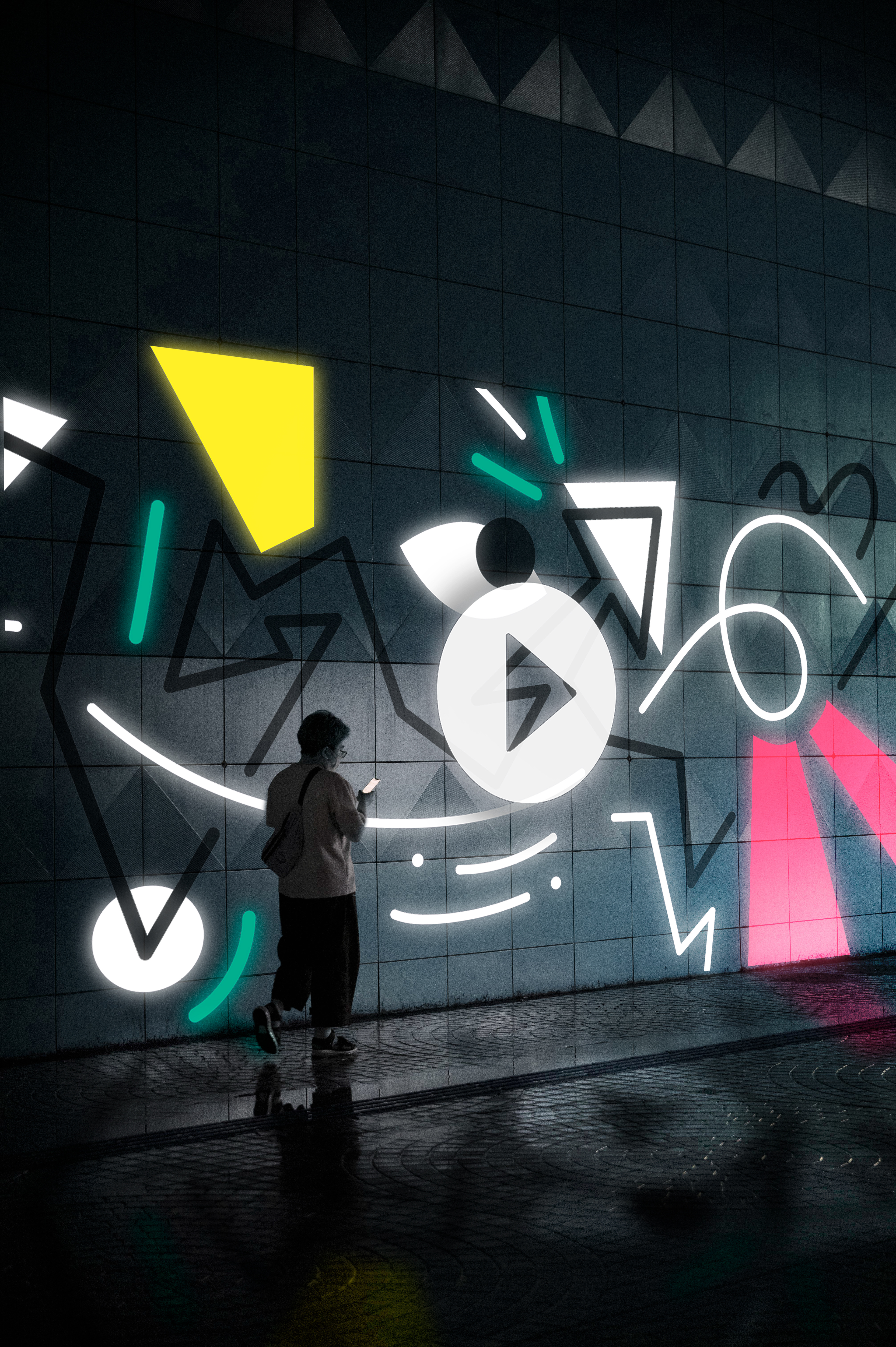 J'ai ensuite animé la fresque, et imaginé une version projetée sur un mur extérieur, pour prolonger la vibration du lieu au-delà de ses murs.